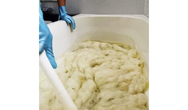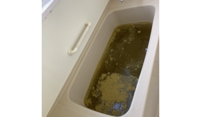 風呂釜配管の皮脂汚れ、無数の菌を独自の洗浄技術と除菌仕上げで隅々まできれいに!