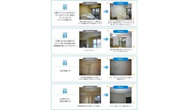 基本、アパートなどの退去時の修繕や老人ホーム、ホテル、戸建などクロスがあるところ全て対象になります。