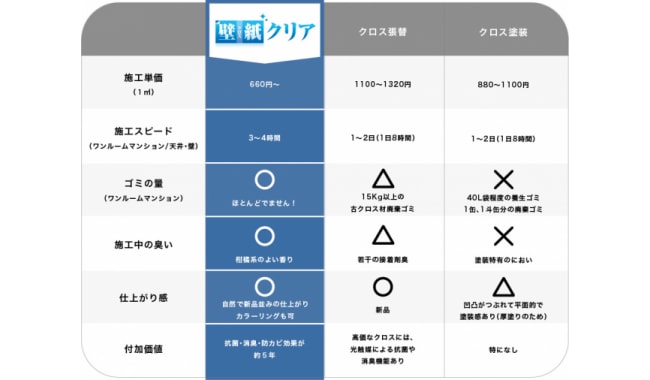 施工料金は壁紙張替えの50%以下、施工スピードは張替えの3倍以上!
