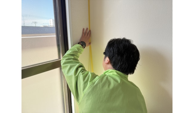 ③要所にマスキングと家具への養生を施工を開始